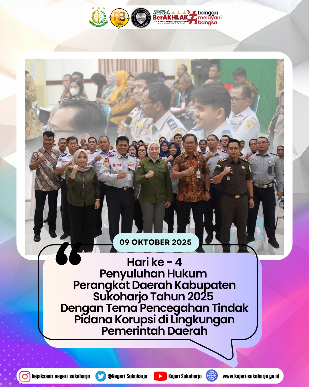 Hari ke-4 Penyuluhan Hukum Perangkat Daerah Kabupaten Sukoharjo Tahun 2025 Dengan Tema Pencegahan Tindak Pidana Korupsi di Lingkungan Pemerintah Daerah